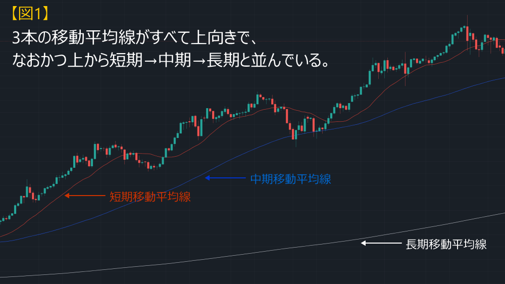 3本の移動平均線がきれいに同じ方向へ並んでいる状態のことを言います。