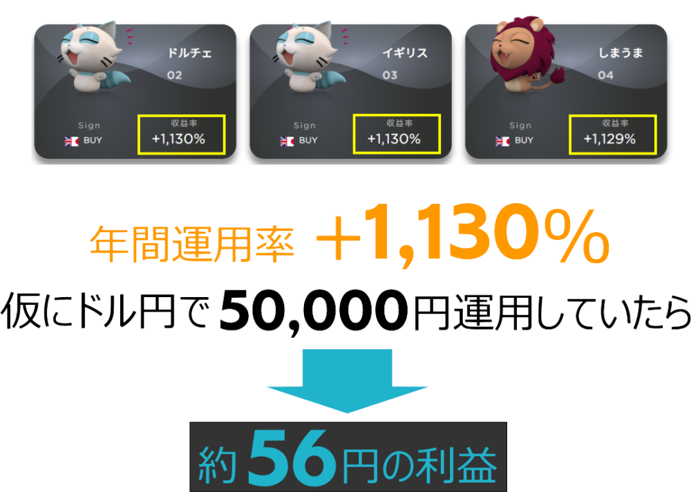 このように年間運用率1000%以上という実績がゴロゴロ出はじめているのがAIトレードです。