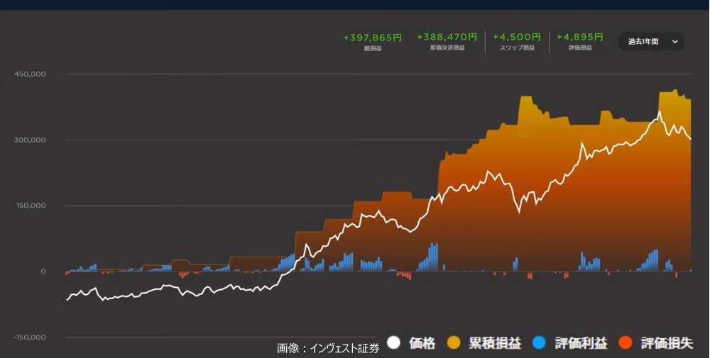 では、正しい手法を使ったAIは実際にどれほど稼ぐことが出来るのか?これは一例としてインヴァスト証券という会社のAIを使ったものになりますが、ある一定の時期から右肩上がりの運用率を出しています。
