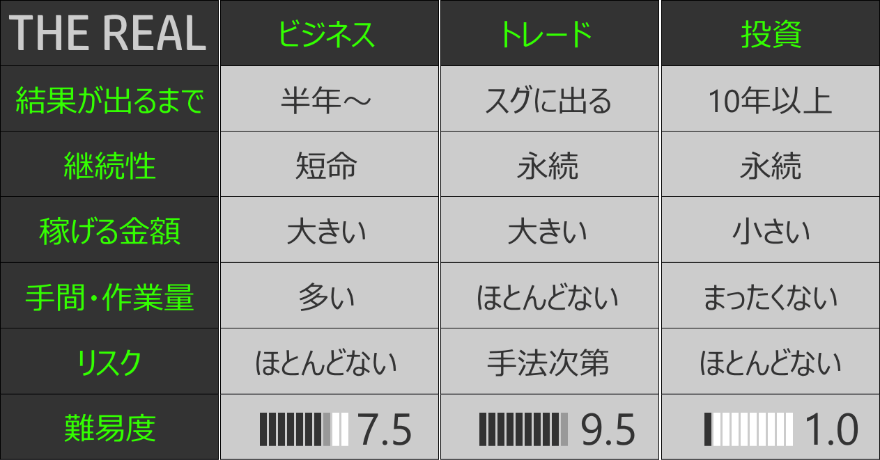トレードはビジネスと投資の弱点を補ってくれるからです。