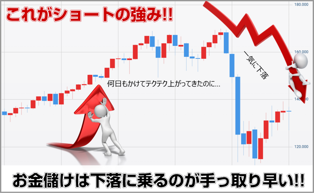 以上のような歴史的な大暴落をみても分かる通り、相場において「ショート」は情報収集さえ怠らなければ、誰でもボロ儲けできる場面であります。