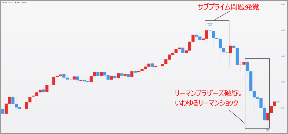その後、株価を戻すまでに3年以上かかっていることからも、まさに金融史上はじまって以来の最悪最恐の金融ショックだったと言えます。